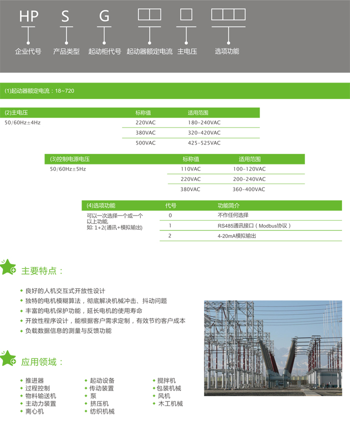 HPSG列通用型軟起動控制柜是以先進(jìn)的智能化數(shù)字式電動機(jī)軟起動器為主要控制件并配有保護(hù)型主回路進(jìn)線斷路器、旁路接觸器于一體 ,可實現(xiàn)多重保護(hù)的單臺電機(jī)控制裝置。